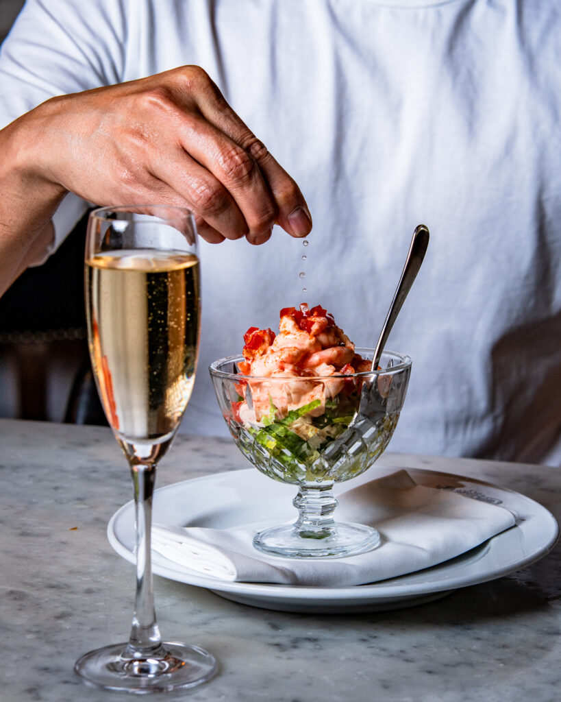 R&A Prawn Cocktail with rémoulade, cucumber, baby gem & cocktail sauce